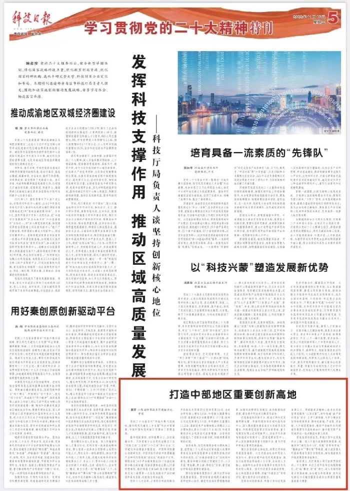 今天(11月16日),《科技日?qǐng)?bào)》在學(xué)習(xí)貫徹黨的二十大精神特刊中刊發(fā)了江西省科技廳黨組書記、廳長(zhǎng)猶王瑩的署名文章《打造中部地區(qū)重要?jiǎng)?chuàng)新高地》。現(xiàn)全文轉(zhuǎn)發(fā)。