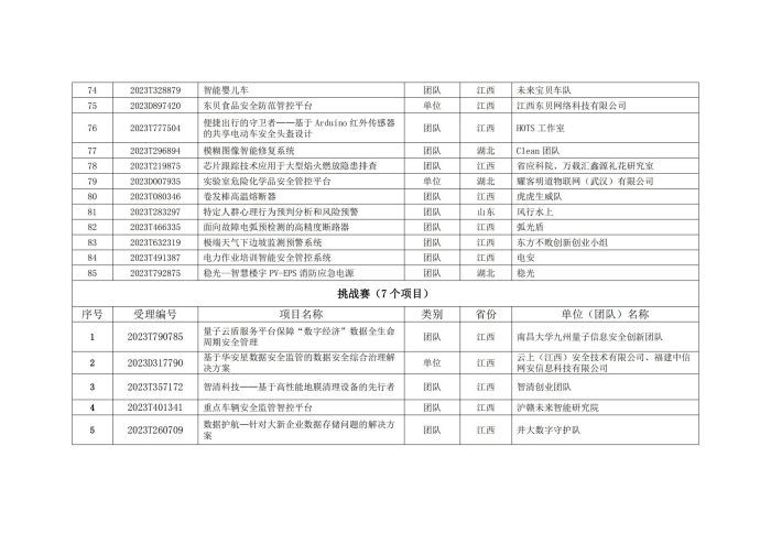 關(guān)于公布第五屆中國(guó)(江西)公共安全創(chuàng)新創(chuàng)業(yè)大賽晉級(jí)復(fù)賽項(xiàng)目名單的通知